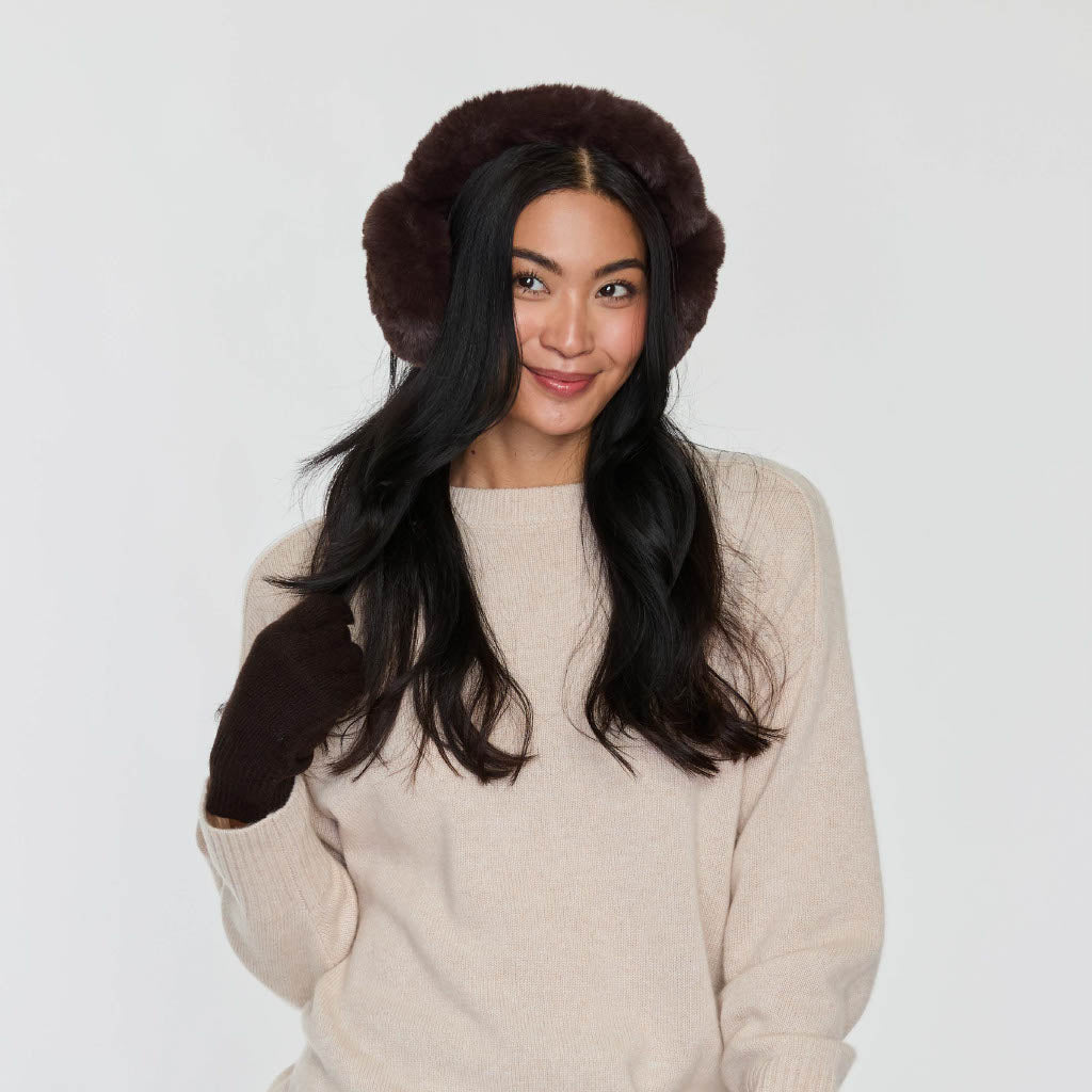 Designed to combine style and function, these Faux Fur Ear Muffs offer luxurious 100% cashmere warmth wrapped in a plush faux fur exterior. Ideal for cold weather, they protect your ears comfortably without compromising your hairstyle, making them a sophisticated accessory for chilly days.