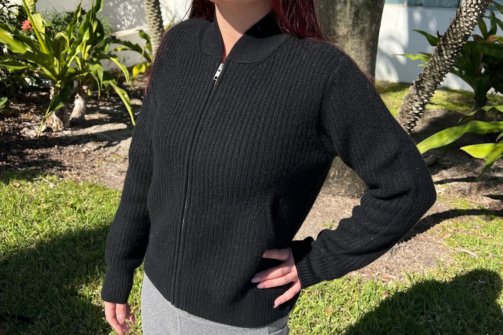 Indulge in luxury with our Kokun Bomber Jacket. Made from 100% cashmere knit, this bomber jacket exudes sophistication and exclusivity. Experience the softness and warmth of cashmere while looking effortlessly stylish. Elevate your wardrobe with this premium piece.