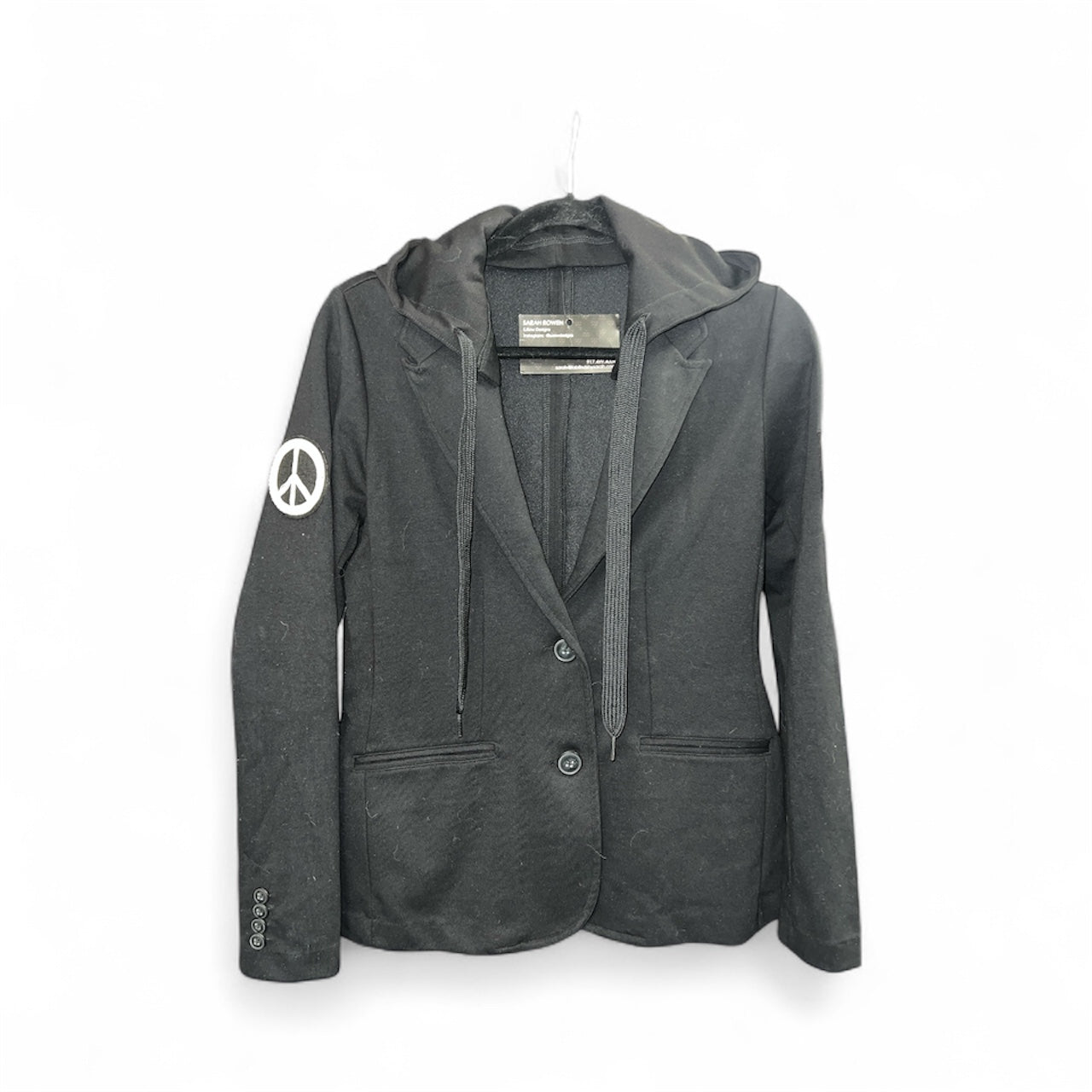 Designed originally for athleisure, this blazer seamlessly transitions to evening wear. Its hoodie-inspired stretch ensures comfort throughout the day, while maintaining a chic, modern silhouette. Featuring shoulder patches and a detachable hood, it adds a playful twist to the classic blazer, combining style with effortless ease.