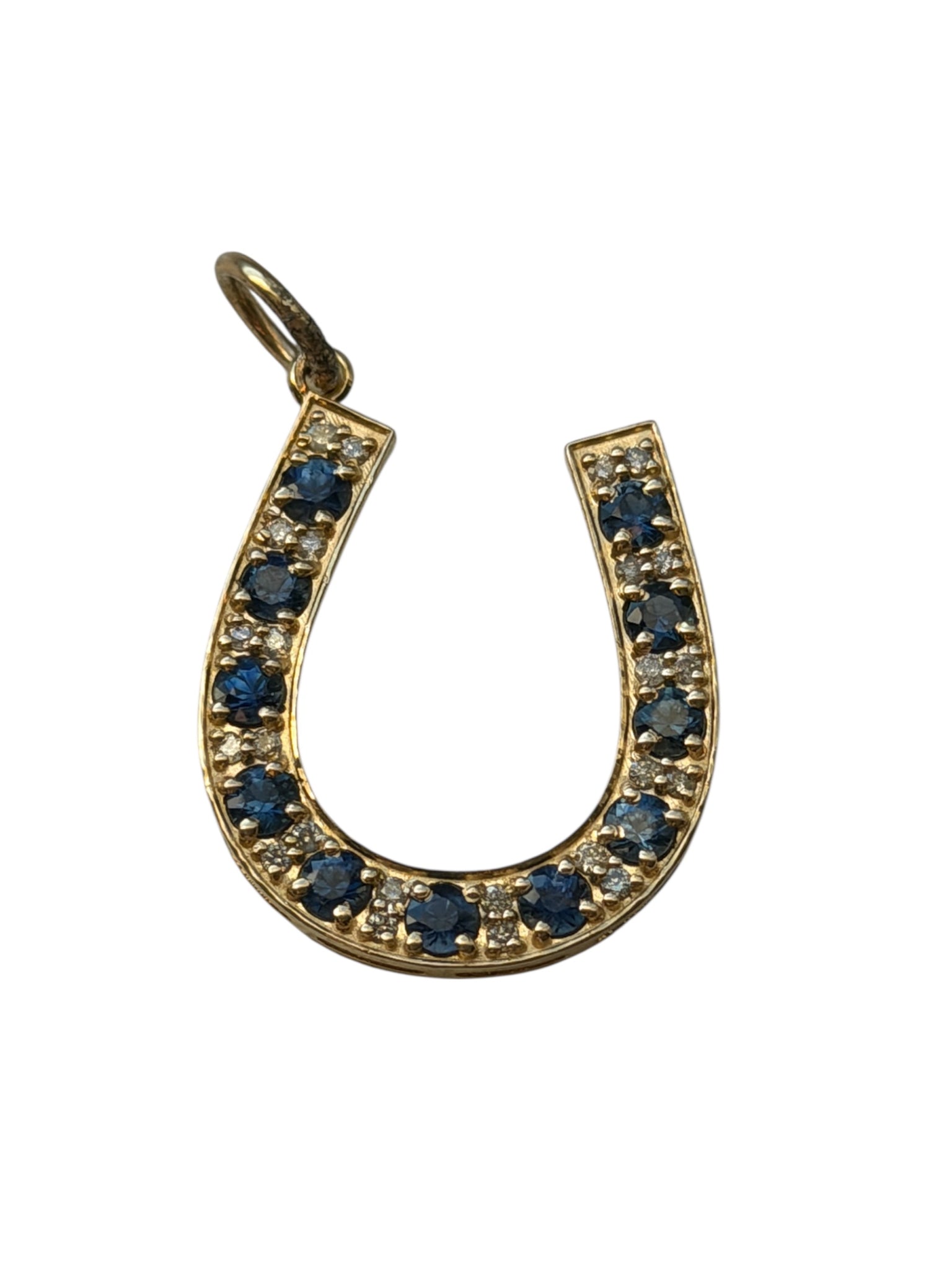 14KT Gold Diamond & Sapphire Horseshoe Charm