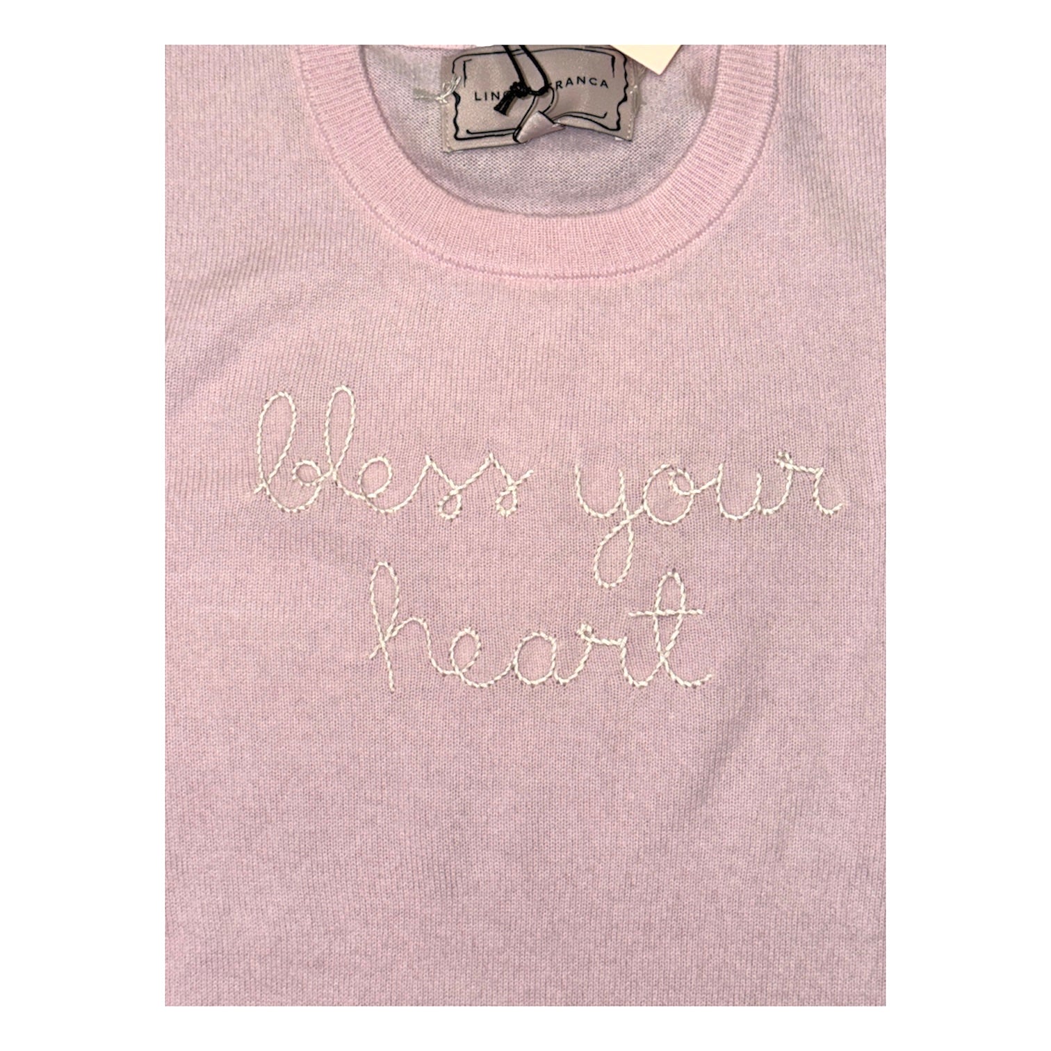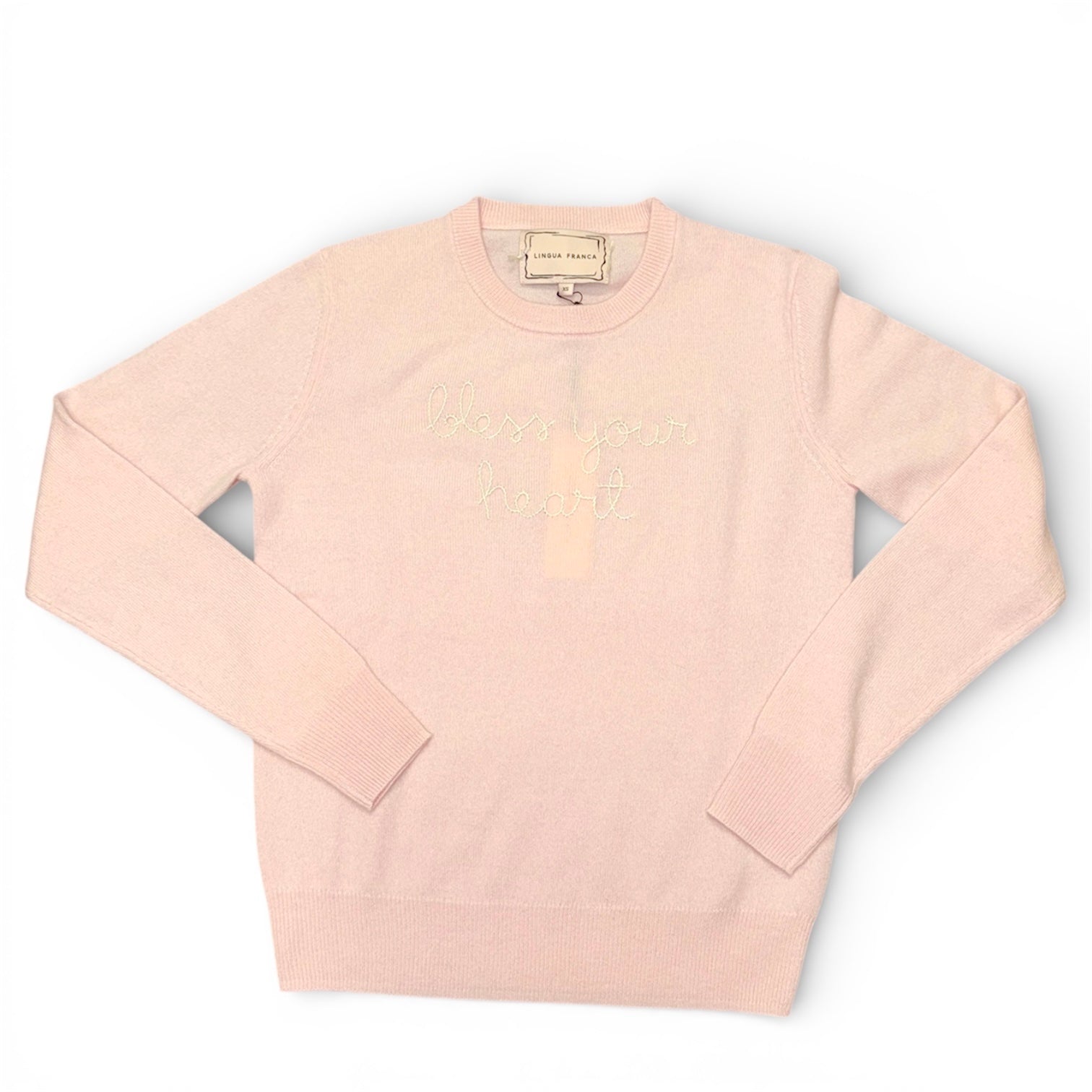 Lingua Franca "Bless Your Heart" Cashmere Crewneck