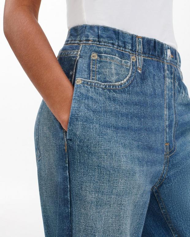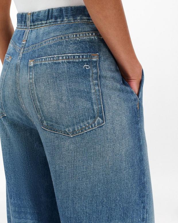 Miramar, our revolutionary printing technique, makes any material look like denim. These wide-leg pants are cut and sewn from cotton terry cloth that's ultra-soft on the inside and printed on the outside to look like your favorite jeans. Featuring a pull-on elastic waistband and side seam pockets, the mid-rise style further achieves its comfortable fit and feel with the other denim details digitally printed on the fabric.
